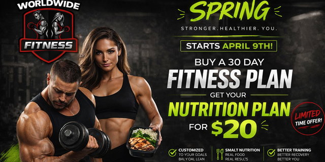 Spring is your time to reset, refocus, and level up — and Worldwide Fitness is making it easier than ever. Starting April 9th, when you purchase any 30-Day Fitness Plan, you’ll unlock access to a fully customized Nutrition Plan for just $20. This limited-time offer is designed to give you everything you need to transform your body the right way — combining structured training with personalized nutrition tailored specifically to your goals. Whether you’re looking to lean out, build muscle, or stay consistent, this is your opportunity to take your results to the next level with a complete fitness and nutrition system.